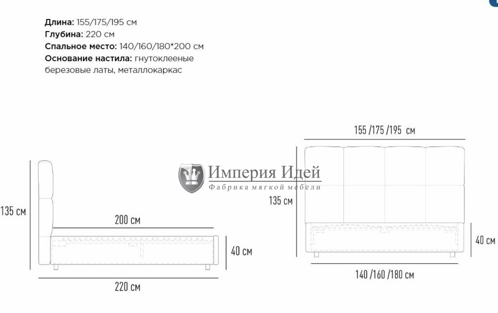 Размеры: 155х220 175х220 195х220